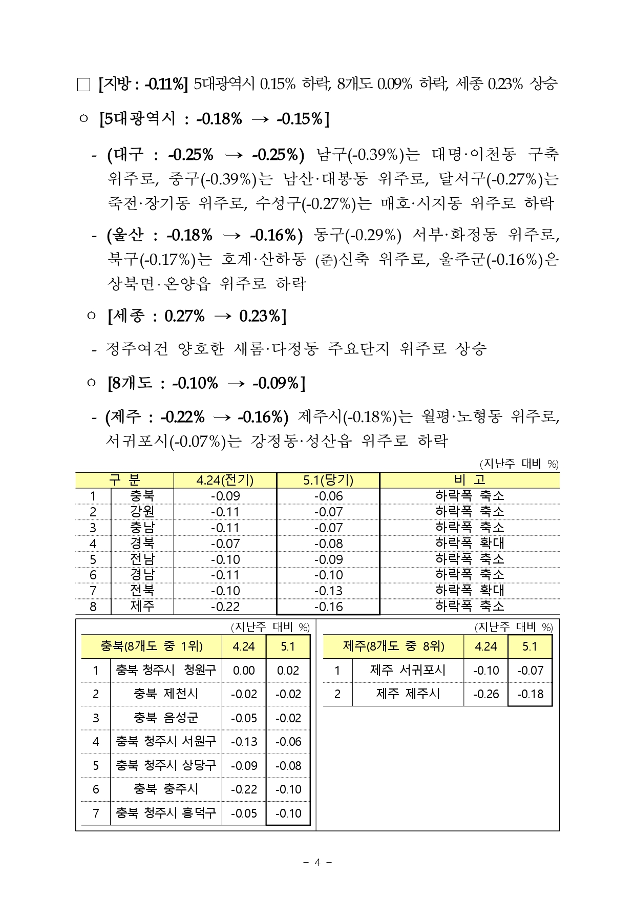 | 한국부동산원 전국주택가격동향 조사(2023.04 기준) (0) | 2023.05.18 |
