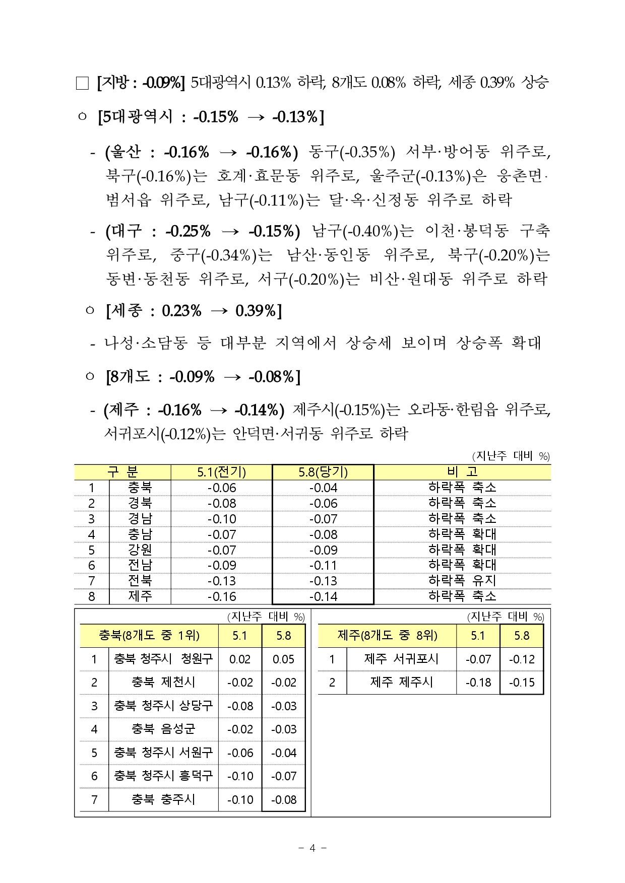 | 한국부동산원 주간아파트 가격동향(2023.05.15 기준) (0) | 2023.05.18 |