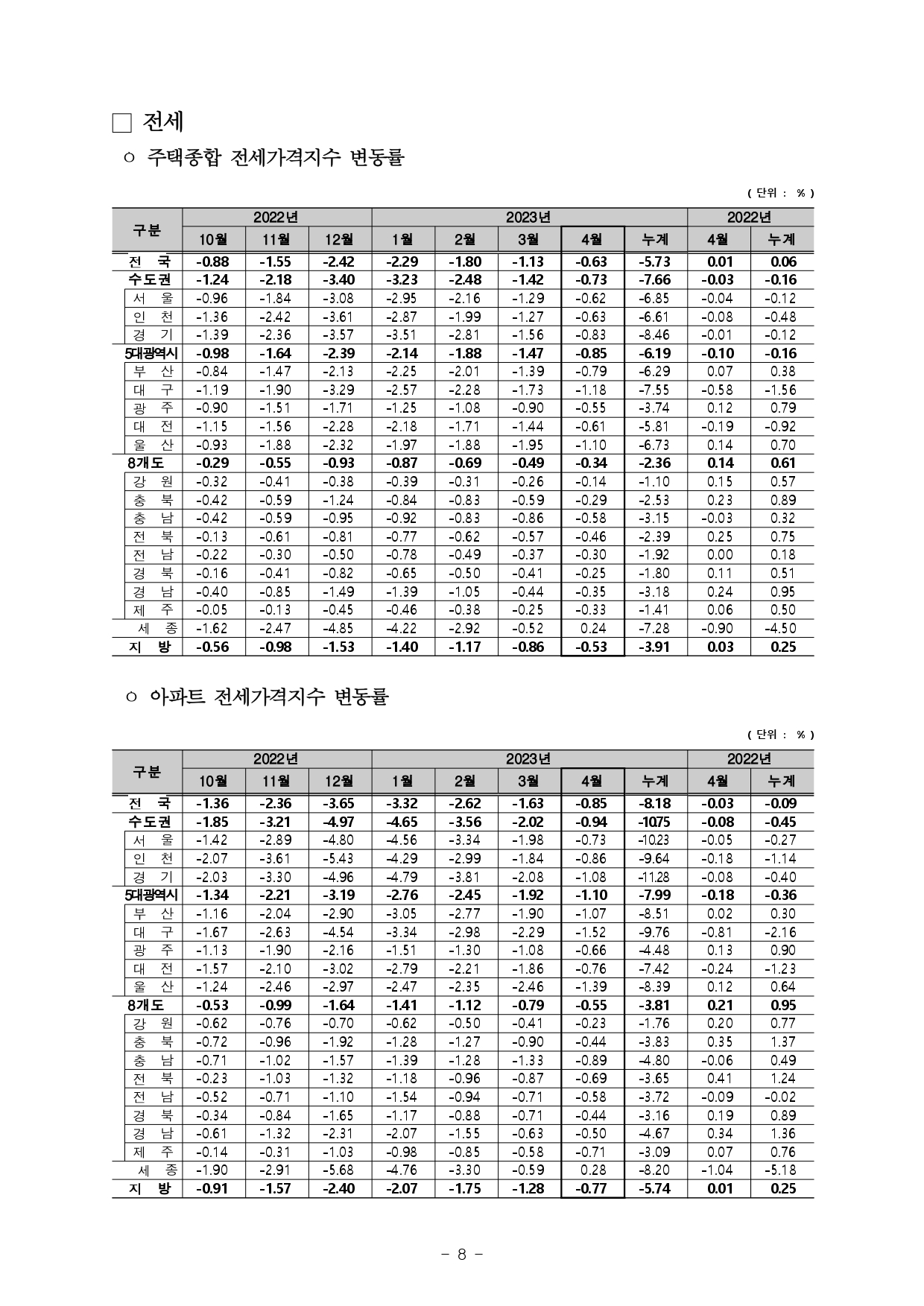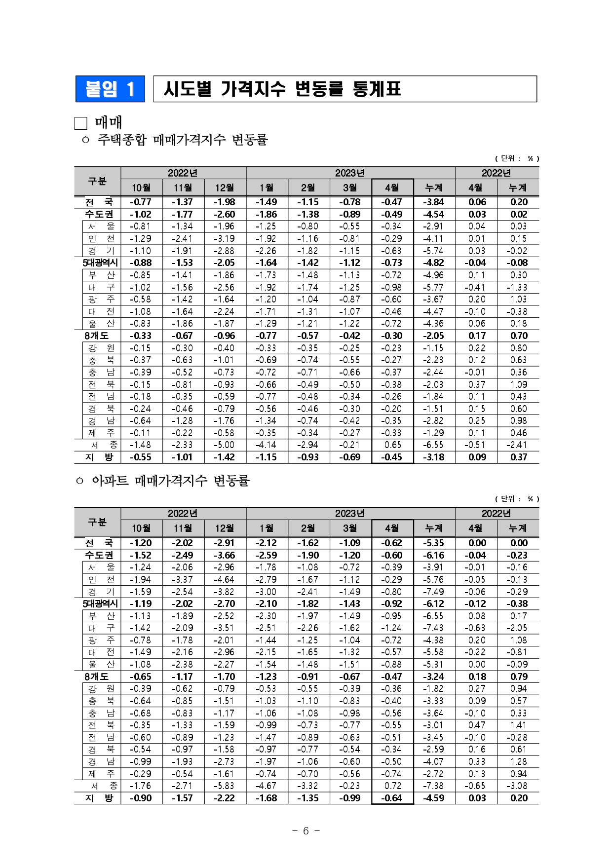 | 한국부동산원 주간아파트 가격동향(2023.04.24 기준) (0) | 2023.05.02 |