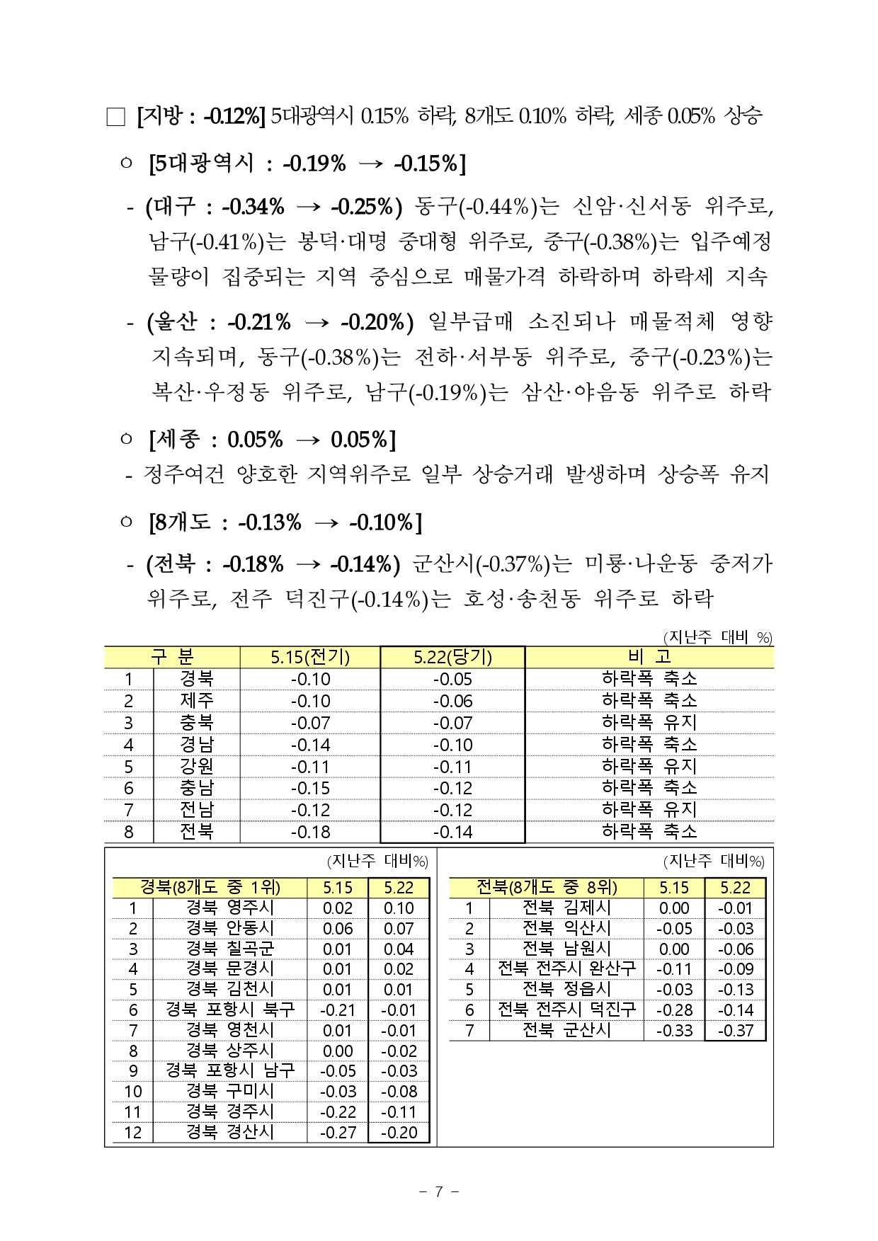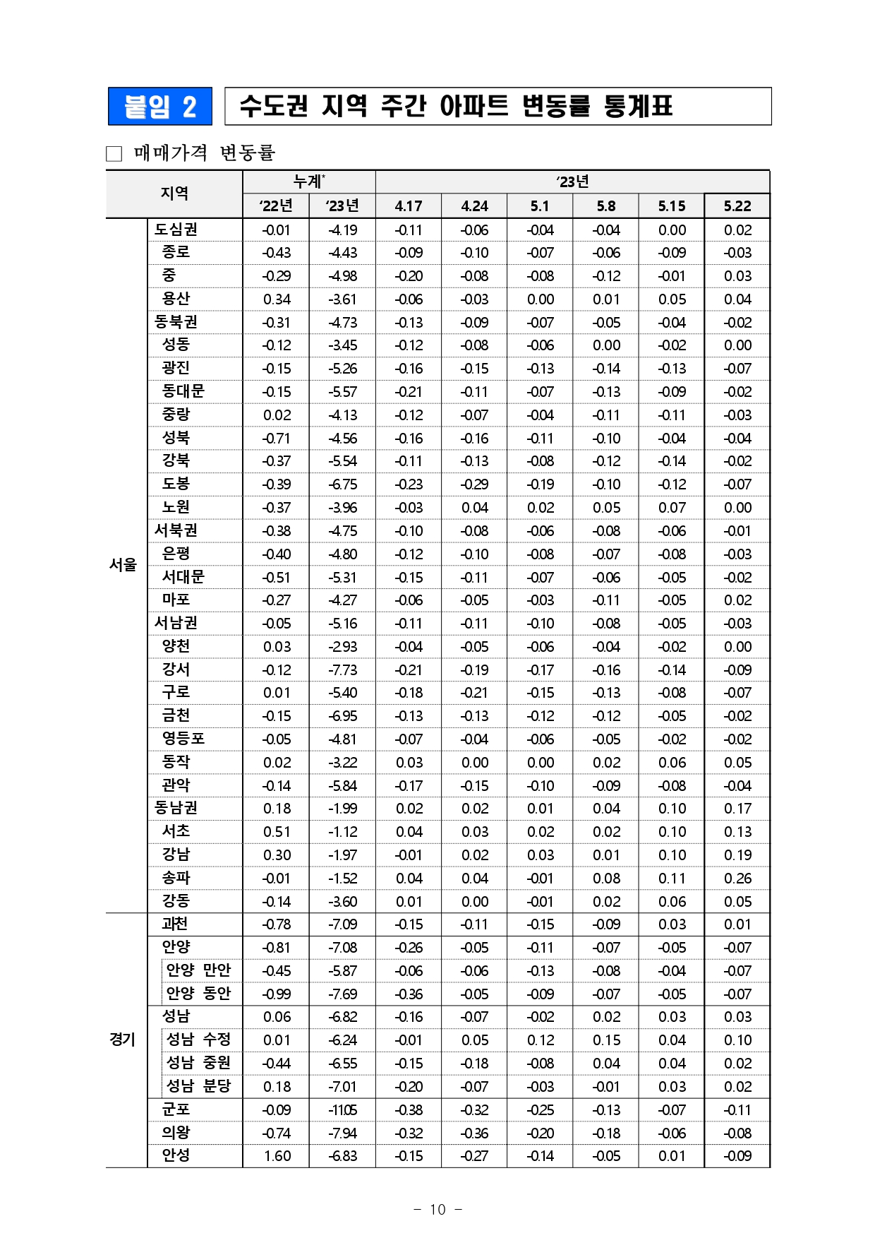 | 한국부동산원 주간아파트 가격동향(2023.05.15 기준) (0) | 2023.05.18 |