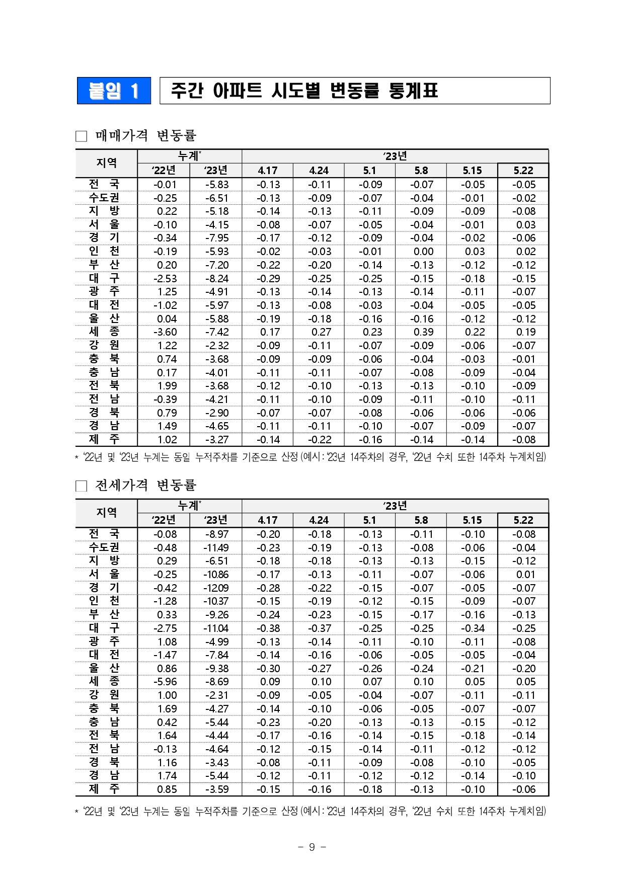 | 한국부동산원 전국주택가격동향 조사(2023.04 기준) (0) | 2023.05.18 |