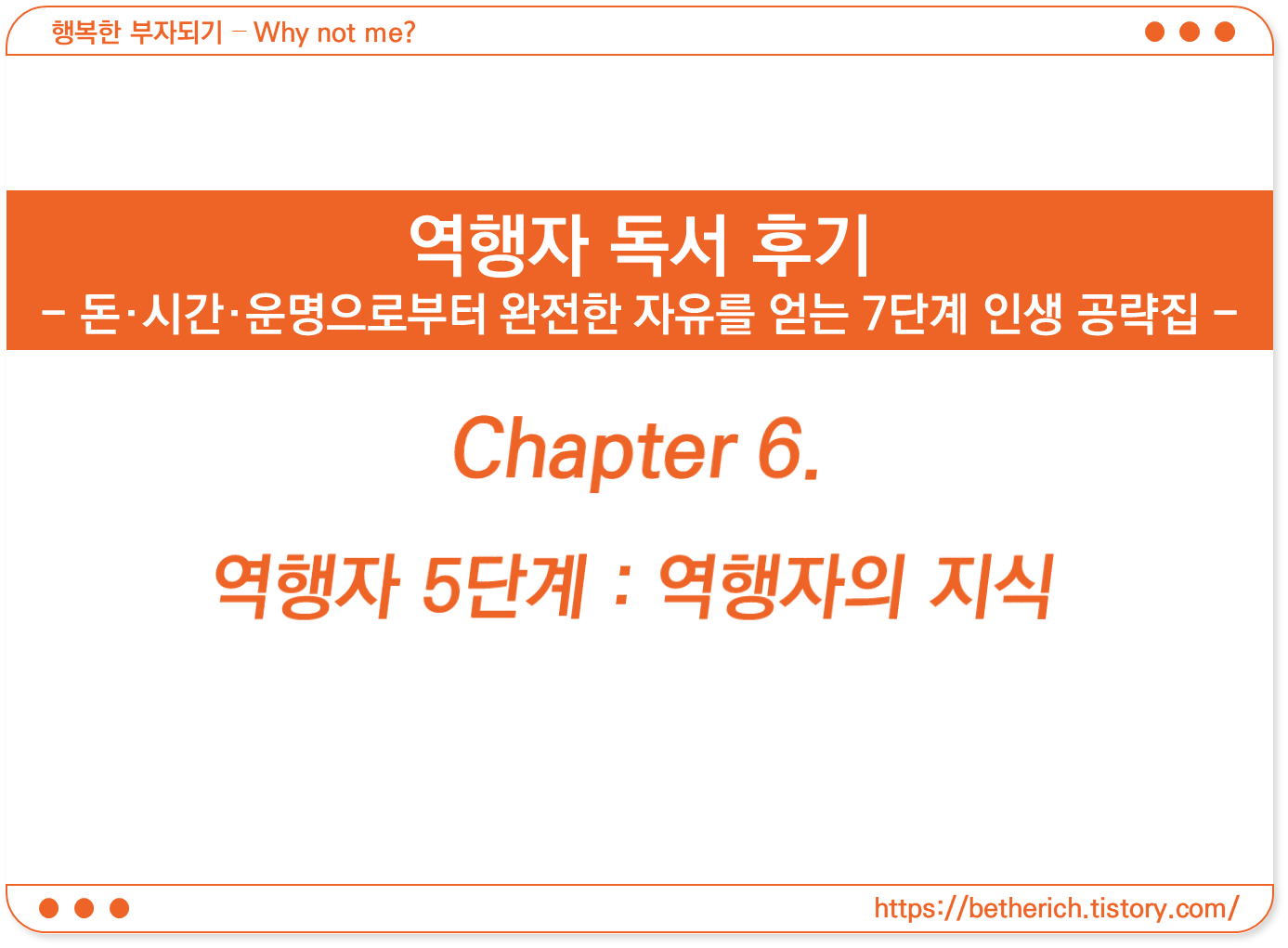 | (역행자 후기) Chapter 7. 역행자 6단계 - 경제적 자유를 얻는 구체적 루트 (2) | 2023.06.15 |