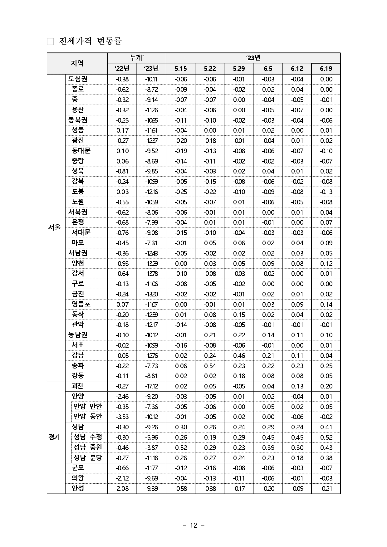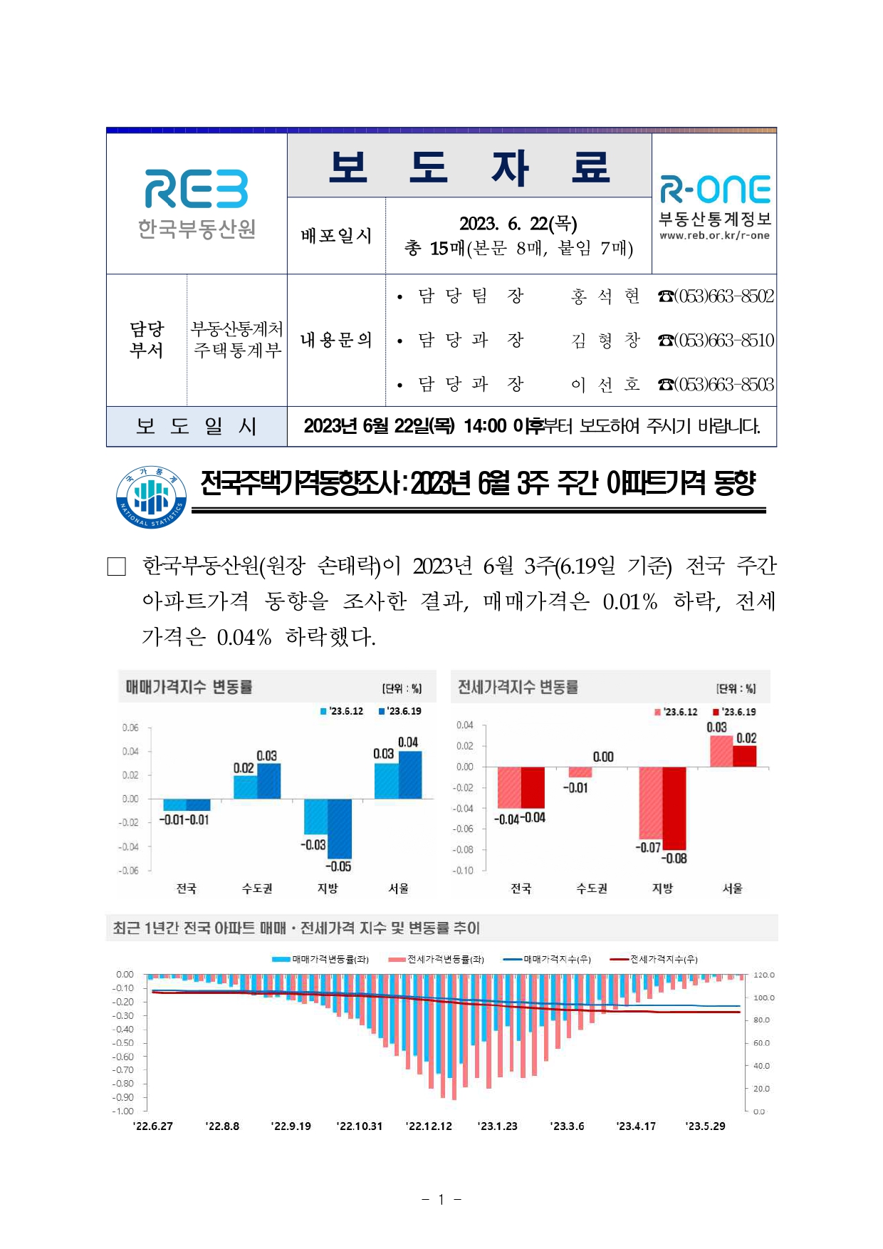 | 한국부동산원 전국주택가격동향 조사(2023.05 기준) (1) | 2023.06.19 |