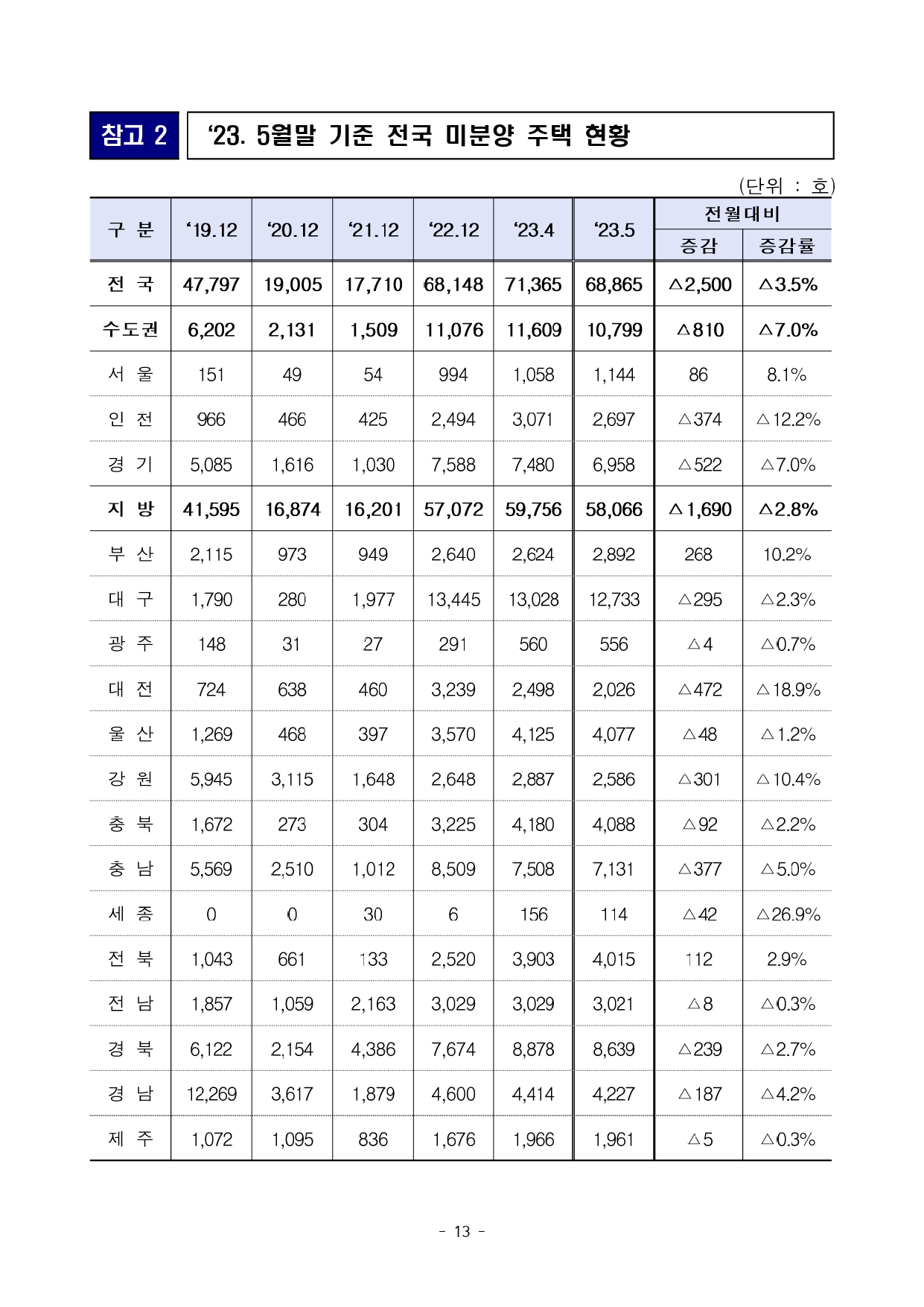 | 한국부동산원 전국주택가격동향 조사(2023.05 기준) (1) | 2023.06.19 |