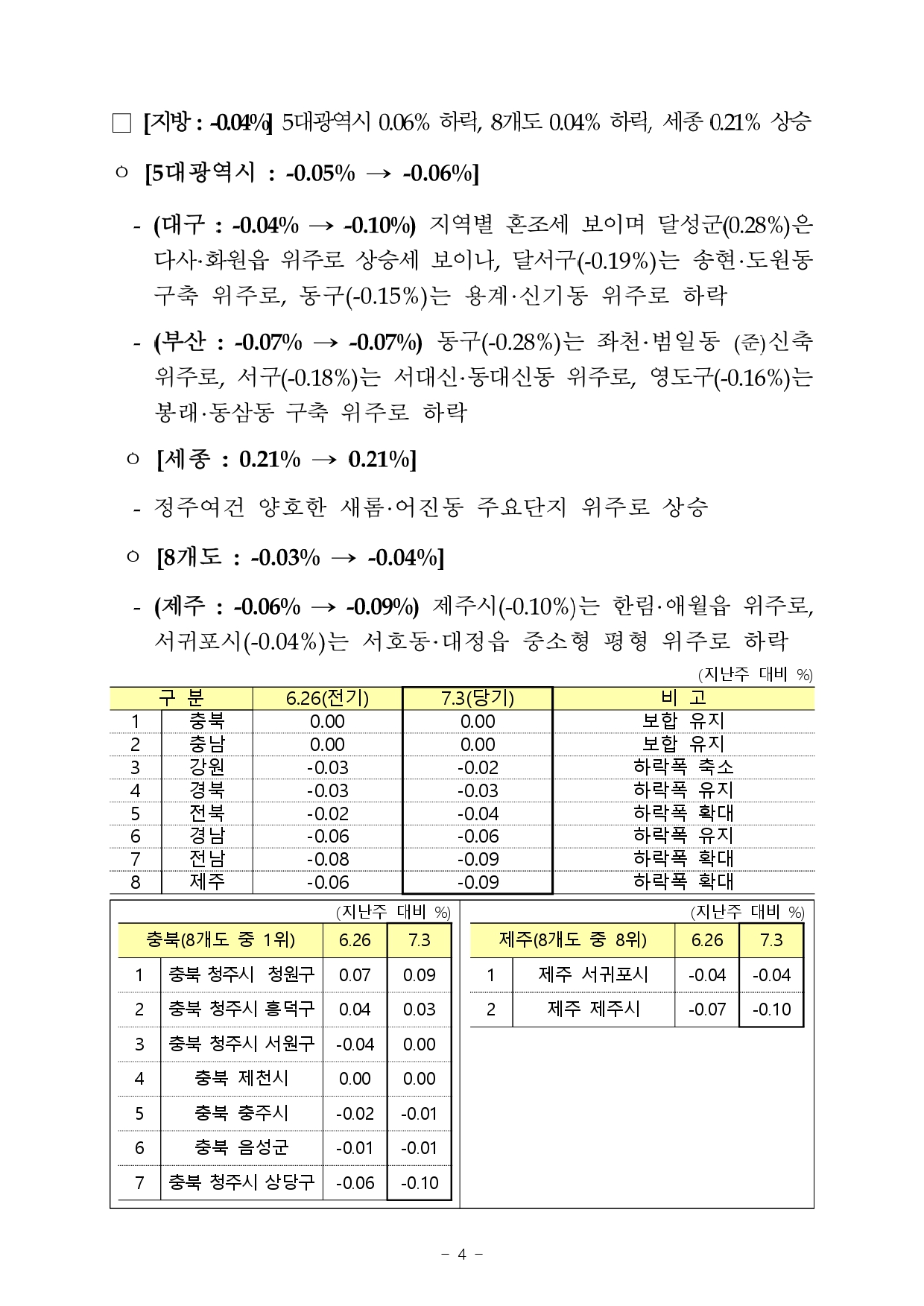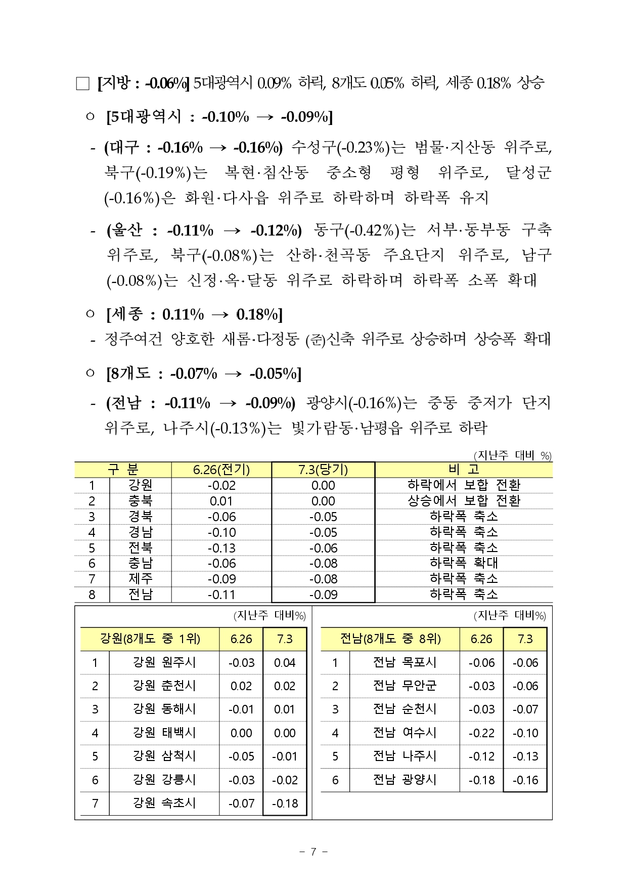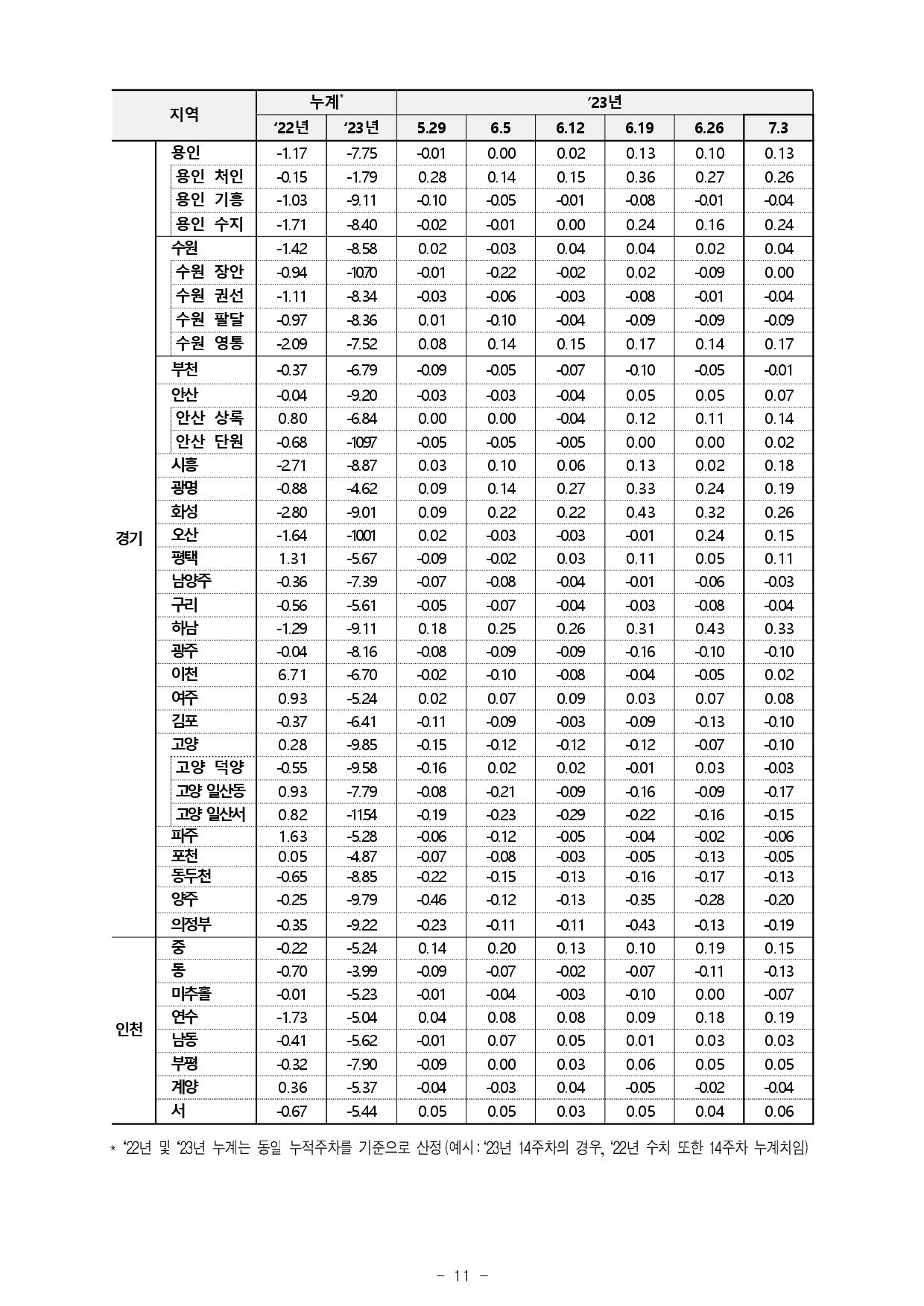 한국부동산원 주간아파트 가격동향 (2023.07.10 기준) (0) | 2023.07.14 |