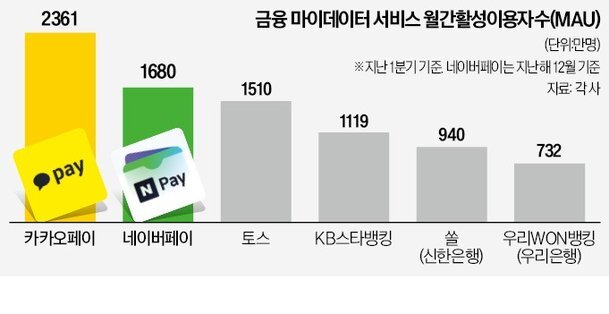 네이버·카카오 마이데이터 선도 月 이용자 은행앱보다 2배 많아 결제·송금에 주식거래도 가능
