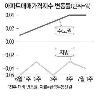 반면 지방 아파트 가격은 전주 대비 0.04% 하락했다. 연초 대비 낙폭이 줄었지만 여전히 56주 연속 하락세가 이어지고 있다. 분양시장과 마찬가지로 매매시장에서도 수도권과 지방의 양극화가 나타나고 있는 것이다.