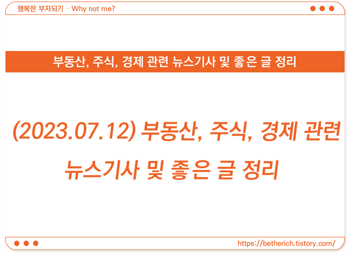 | (2022.7.6) 부동산, 주식, 경제 관련 뉴스기사 및 좋은 글 정리 (0) | 2023.07.07 |