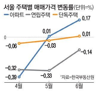 아파트 가격 상승은 다른 주택으로 확산되는 모양새다. 서울 단독주택 매매가격은 상승률 0.01%로 상승전환했다. 단독주택 매매가격이 상승세로 돌아선 것은 지난해 9월 0.06% 이후 9개월 만이다. 다만 연립주택은 변동률 -0.14%로 하락세가 지속됐다. 연립주택은 지난해 6월 하락전환한 이후 12개월 연속 하락세다.