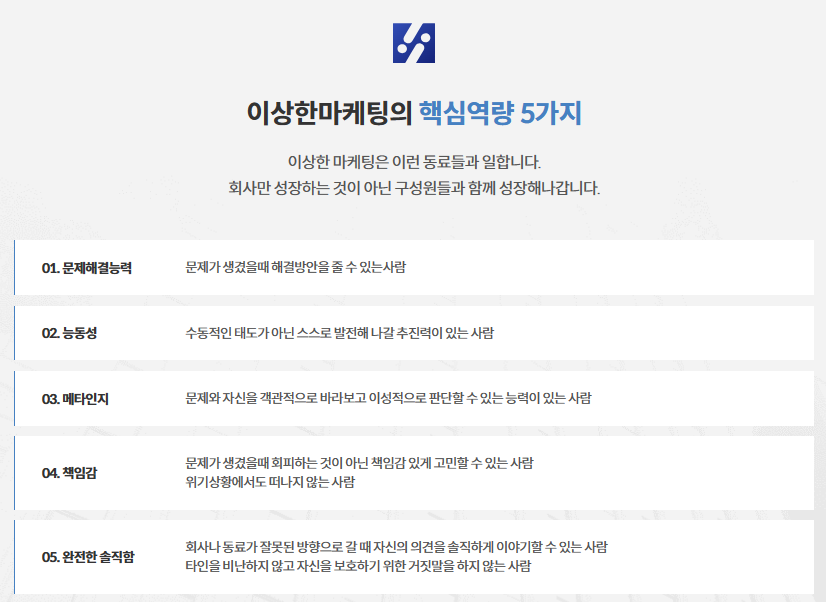 이용하는 채용포털사이트(구인-구직 사이트)는 같지만, 그 안에서도 다양한 회사와 직무가 있는 만큼 보다 유능한 구직자들이 지원하도록 하려면 우리 회사와 직무 설명을 대충 하기보다는 심혈을 기울여 작성하여야 합니다. 자청 님의 회사인 '이상한마케팅', '아트라상'의 채용공고를 다른 회사와 비교하면 확실히 다릅니다.