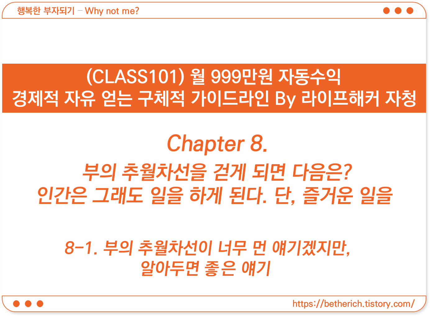 | (클래스101 자청) 8-2. 자동화의 원리, 나는 일주일에 0시간 일한다 (0) | 2023.07.20 |