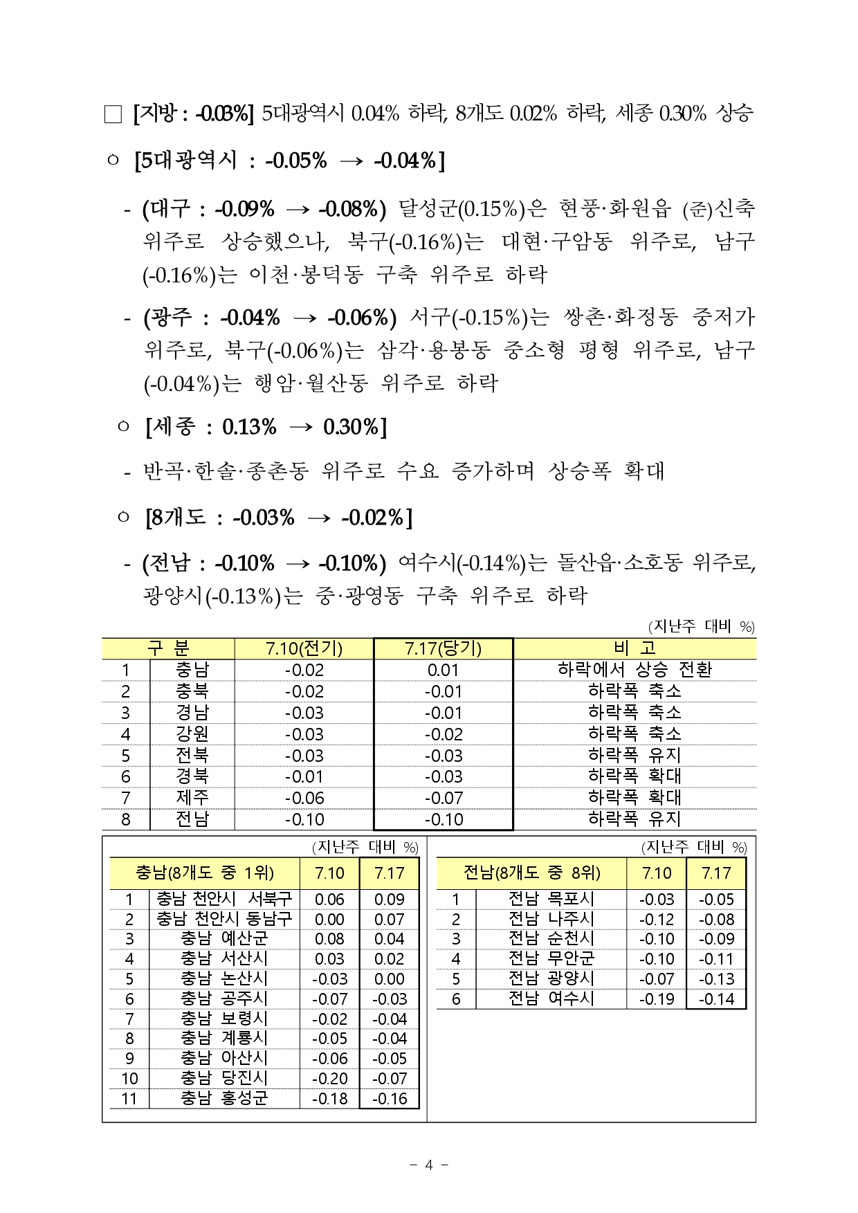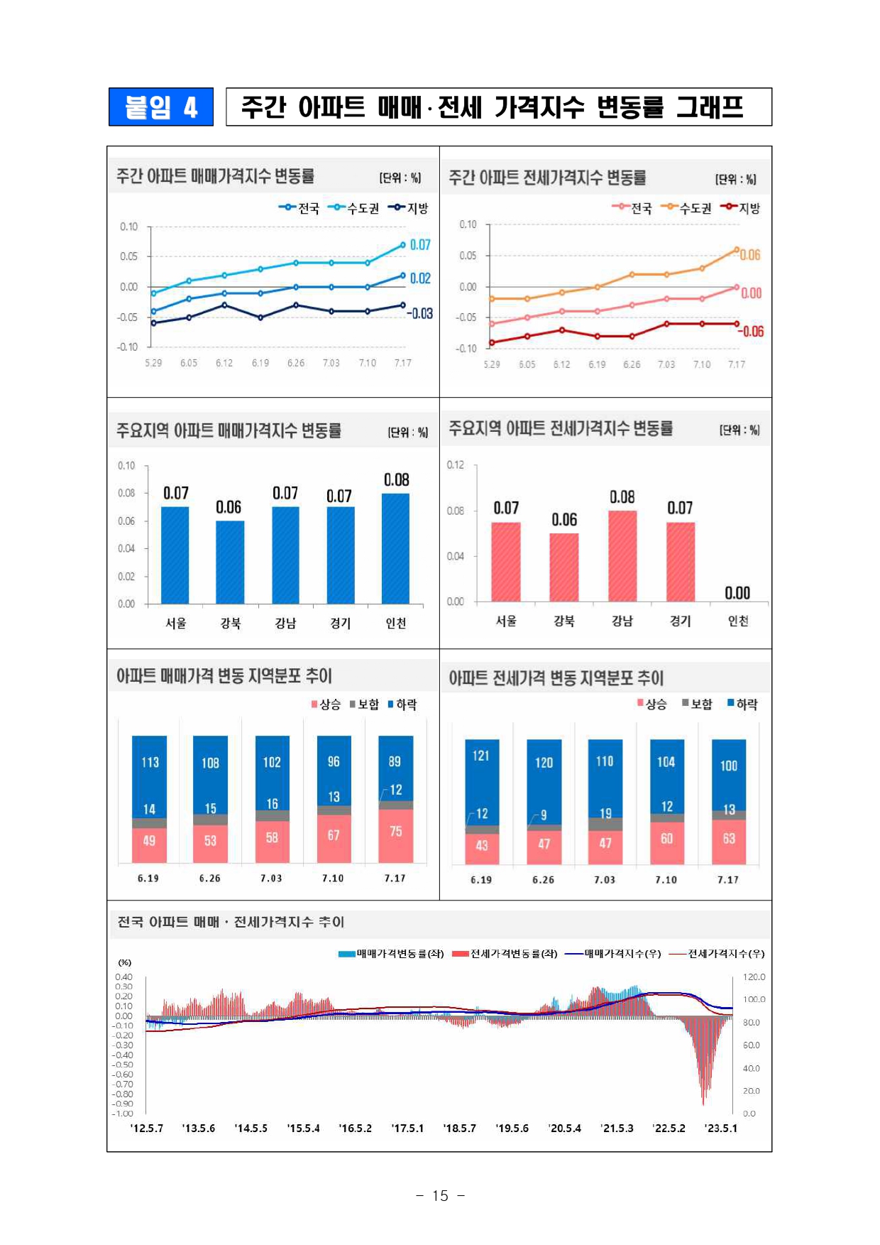 한국부동산원 주간아파트 가격동향(2023.07.24 기준) (0) | 2023.07.31 |
