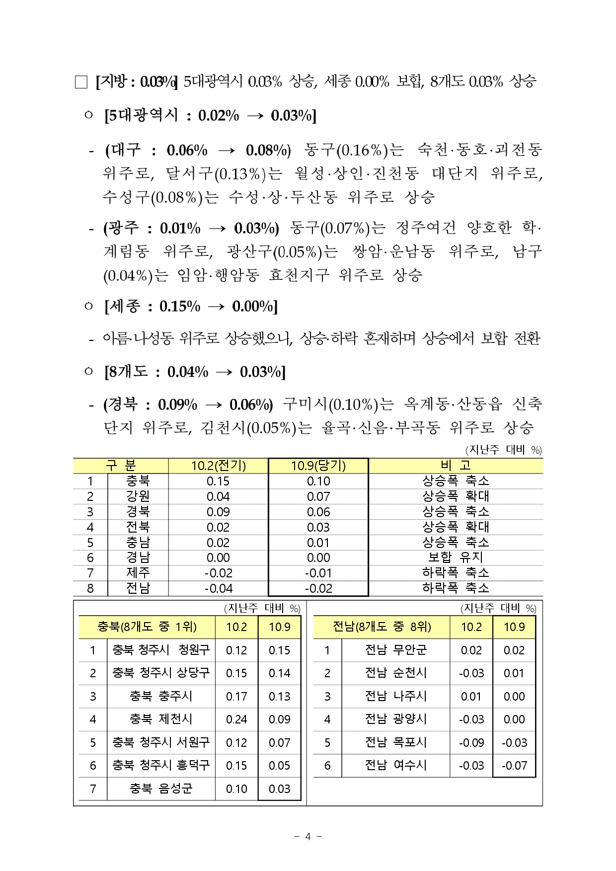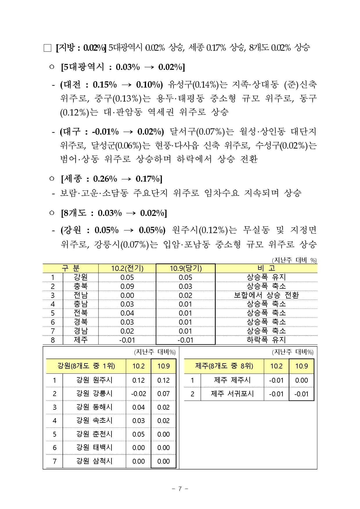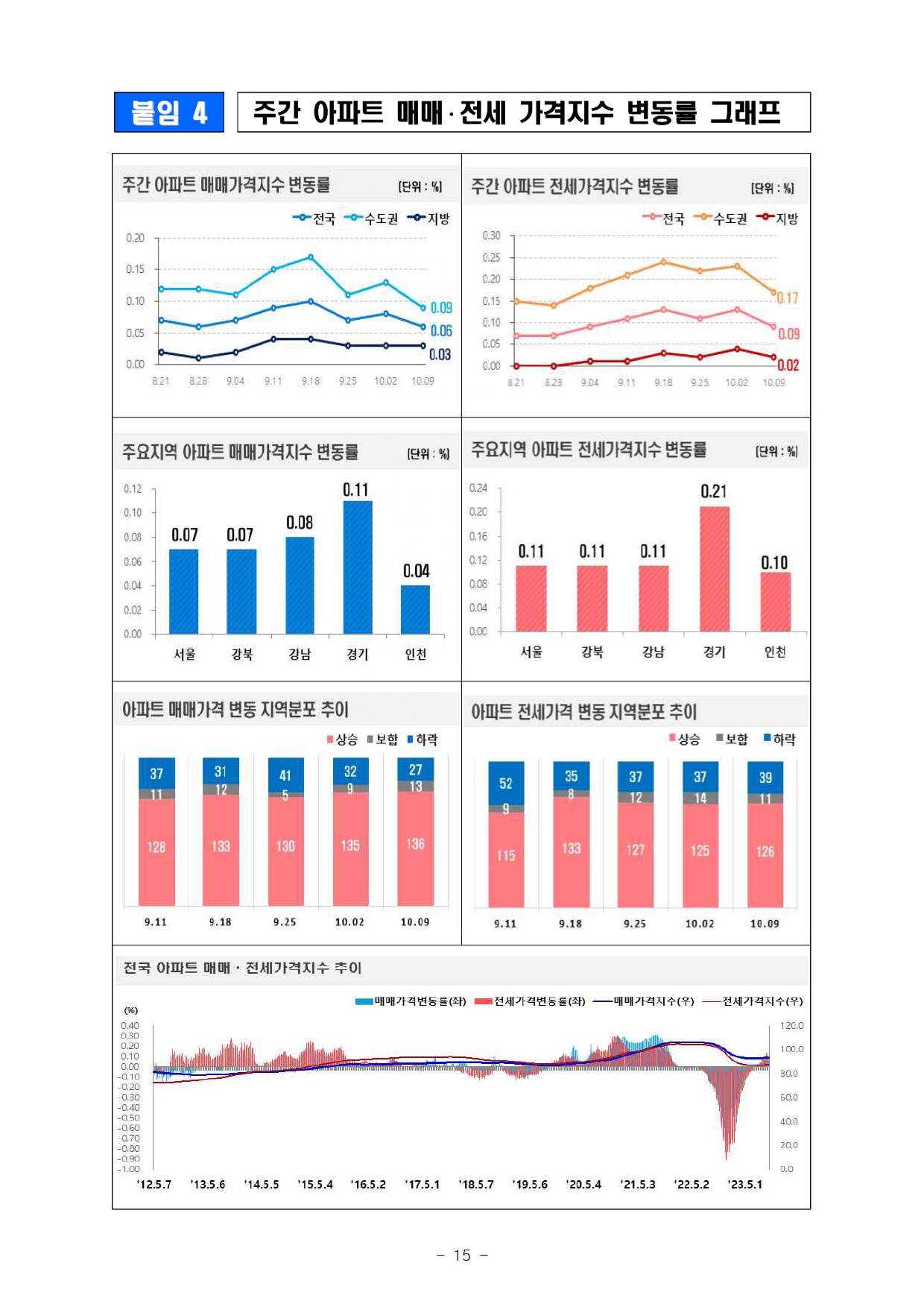 | 한국부동산원 주간아파트 가격동향 (2023.10.02 기준) (0) | 2023.10.13 |