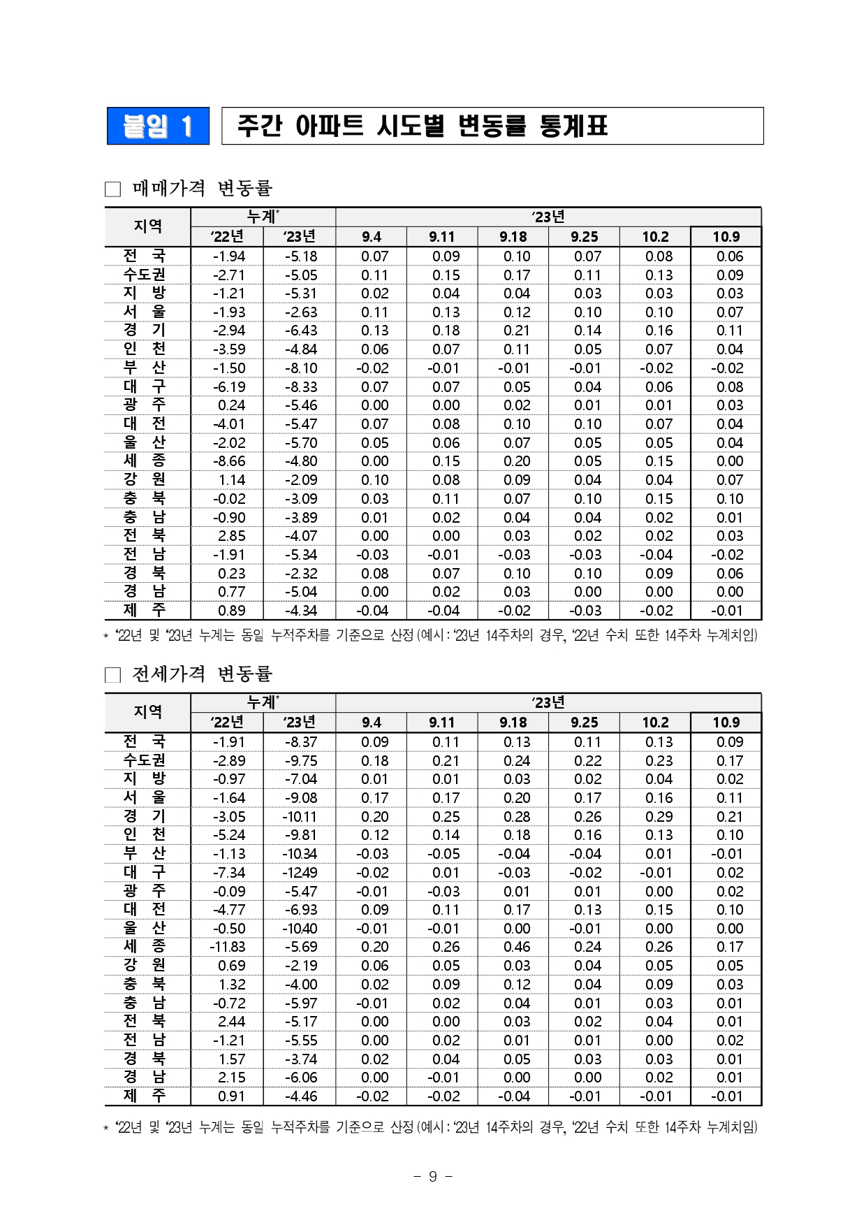 | 한국부동산원 전국주택가격동향조사(2023.09 기준) (0) | 2023.10.20 |