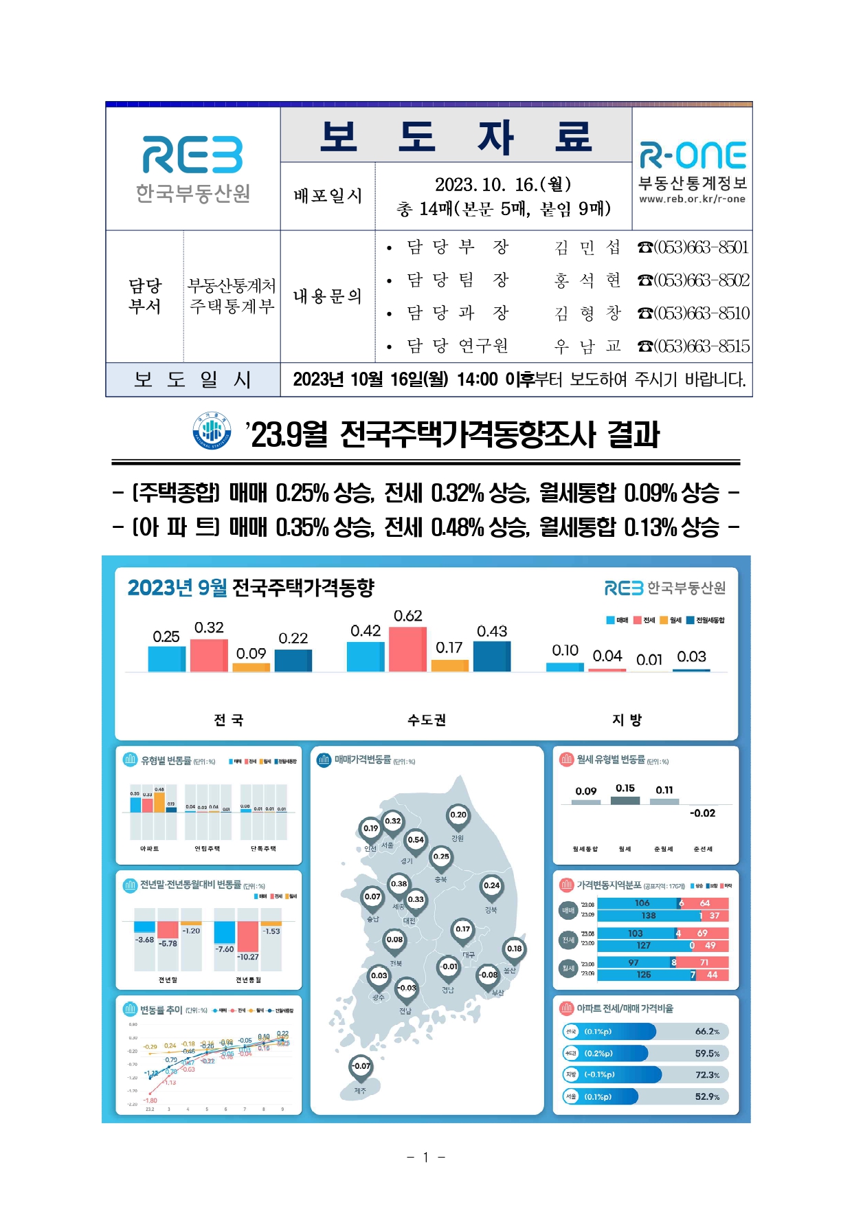 | 한국부동산원 주간아파트 가격동향 (2023.10.09 기준) (0) | 2023.10.13 |
