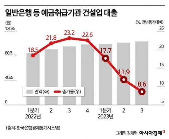 시중은행 대출 담당 실무자는 "건설 경기가 나빠지면서 은행들이 지난해 하반기부터 건설사들 대출 심사를 할 때 다른 업종보다 보수적이었다"며 "태영건설 사태까지 터지면서 올해는 건설사들 대출 나가는 게 더 까다로워질 것"이라고 했다.