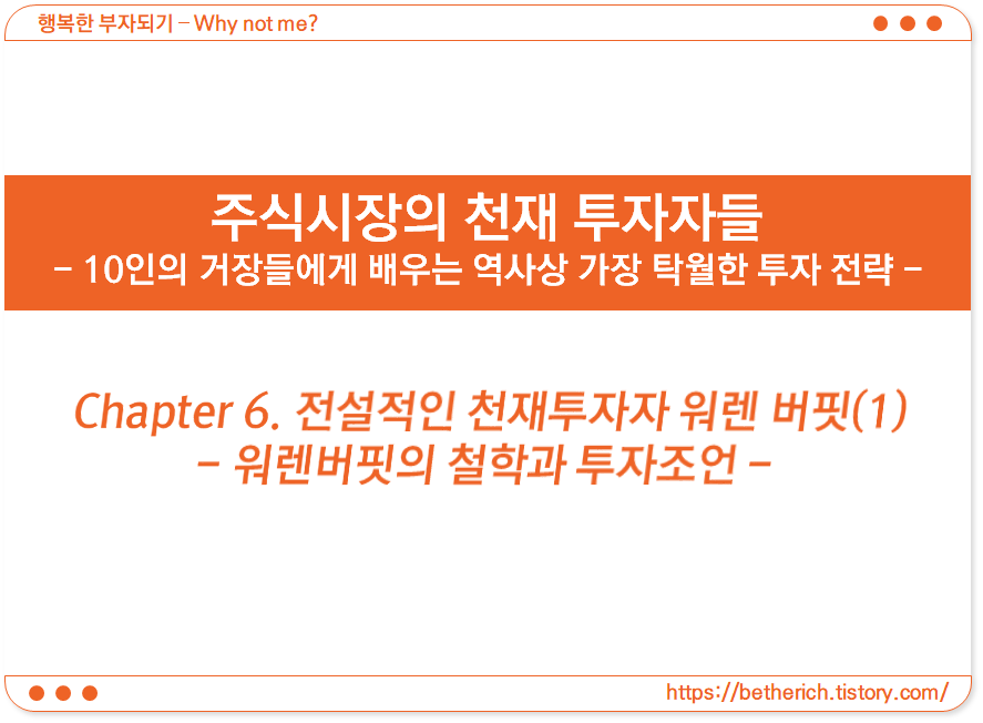 | (주식시장의 천재 투자자들) Chapter 6. 전설적인 천재투자자 워렌 버핏(2) - 워렌버핏의 투자종목 선정방법 (0) | 2021.05.17 |