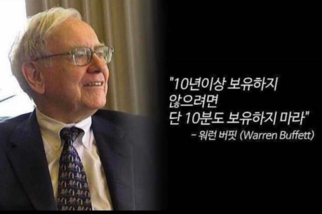 엄청난 부와 명성을 가지고 있는 워렌 버핏이지만(그의 순자산가치만 해도 620억 달러, 한화로 따지면 약 68조 원) 의외로 수수하고 서민적이라고 합니다. 그의 성격 때문인지 버핏의 투자스타일 또한 화려하지는 않습니다. 급등주나 기술주를 옮겨다니며 투자하며 단기간의 차익을 실현하기보다는 '가치 있는 기업에 투자하여 오랜 기간(심지어 10년 이상) 보유하는' 방식으로 엄청난 수익률을 달성했다고 합니다. 그의 투자철학은 바로 이 말로 요약할 수 있을 것 같습니다.