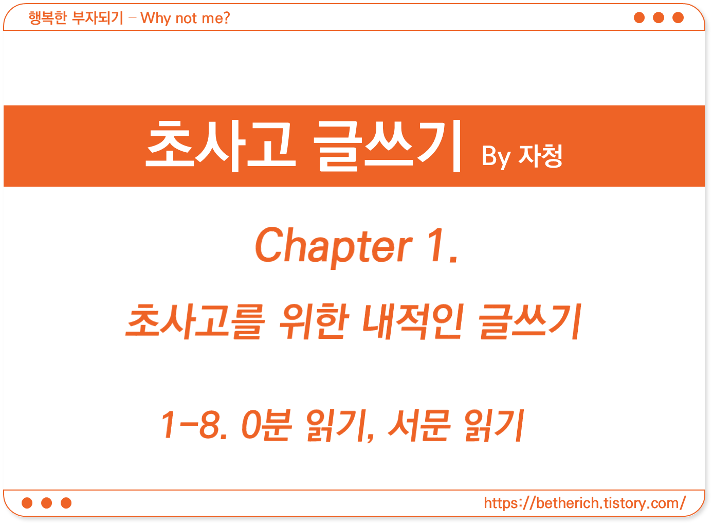 | (자청 초사고 글쓰기 후기) 1-10. 1장을 마무리하며 (1) | 2024.01.18 |
