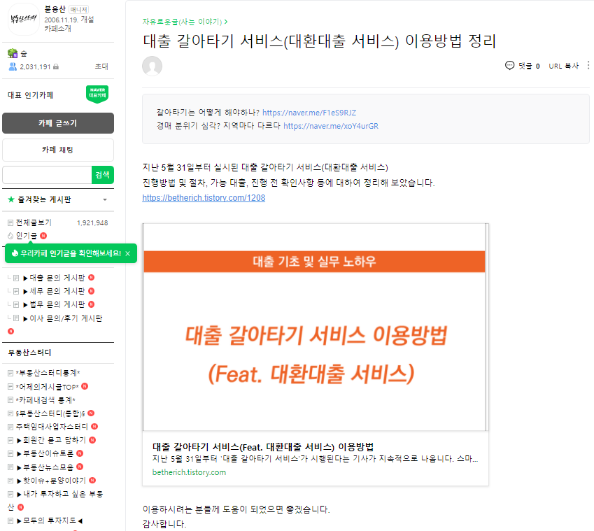 외부 사이트에 언급된 링크를 타고 특정 웹사이트로 유입되는 것을 외부 링크라고 합니다. 예를 들어 네이버 카페에 내가 작성한 글이 링크로 남겨지고, 카페에 접속한 누군가가 그 링크를 클릭하여 내 블로그로 유입시키는 것을 의미합니다. 이런 식입니다.