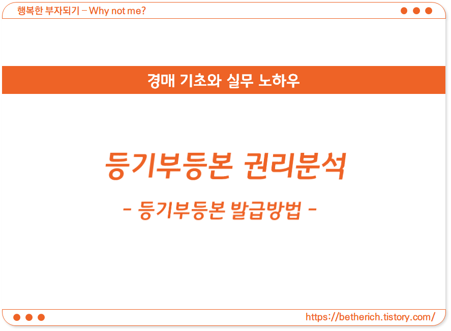 등기사항전부증명서를 통한 권리분석(편의상 앞으로는 "등기부등본 권리분석"이라고 하겠습니다.)을 하기 위해서는 당연히 등기사항전부증명서(등기부등본)을 발급받거나 열람할 수 있는 방법을 알아야 하고 그것을 볼 줄 알아야 합니다. 보통은 부동산 계약을 할 경우 부동산 중개인께서 알아서 발급해 주시고, 경매를 할 경우 유료 경매사이트(굿옥션, 탱크옥션, 지지옥션 등등)에서 알아서 해 주십니다. 하지만 그래도 등기부등본을 어떻게 떼는지, 그리고 어떻게 보는지 정도는 살아가는 데 있어서 필요한 내용일 것 같습니다.