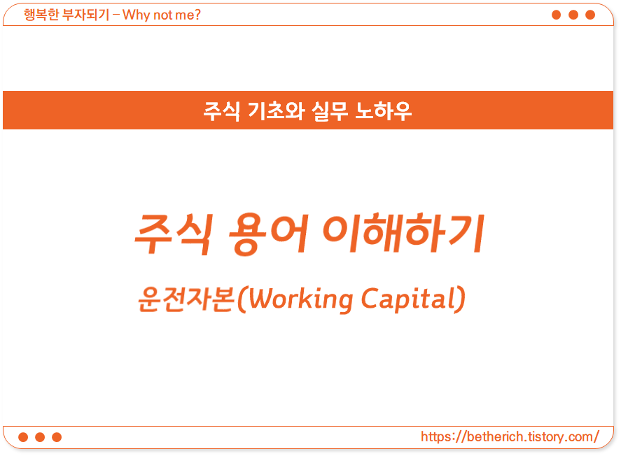 운전자본을 영어로 번역하면 'Working Capital' 이라고 합니다. '일하는 자본?' 이건 또 무슨 말인가? 더 모르겠습니다. 한국말로는 '운전하는 자본'이라고 하고(물론 한자이기 때문에 driving과는 전혀 상관 없습니다. 그냥 유머입니다.) 영어로는 '일하는 자본'이라고 하니 도대체 무슨 말인지 모르겠습니다.