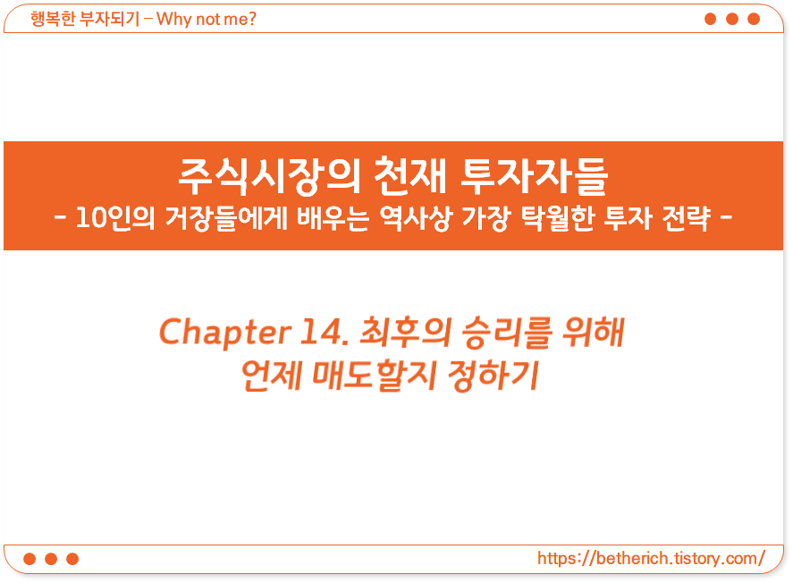 10인의 천재 투자자들로부터 어떤 종목을 어느 시점에 매수해야 하는지에 대하여 배웠습니다. 하지만 매수한 주식을 언제 매도하는지를 결정하는 것은 생각보다 쉽지 않습니다. 내가 매수한 주식의 '파란 불'이 점점 진해질 때 '지금이라도 매도해야 하나?'라는 생각이 들고, '그 때 매도했어야 했는데...'라는 후회를 합니다. 하지만 충분히 수익을 봤던 주식이 날개돋힌 듯 올라갈 때도 '그 때 매도하지 말았어야 했는데...' 라는 후회를 합니다. 대부분의 투자자들이, 심지어는 전문 투자자들조차 매도시기를 저울질하는 것이 얼마나 어려운지 잘 알고 있을 뿐만 아니라 매도 시기를 놓치는 경우도 흔합니다. 그렇다면 매도원칙을 고수하는 것을 어렵게 하는 요인들을 저자인 John P. 리즈는 크게 2가지를 이야기합니다.