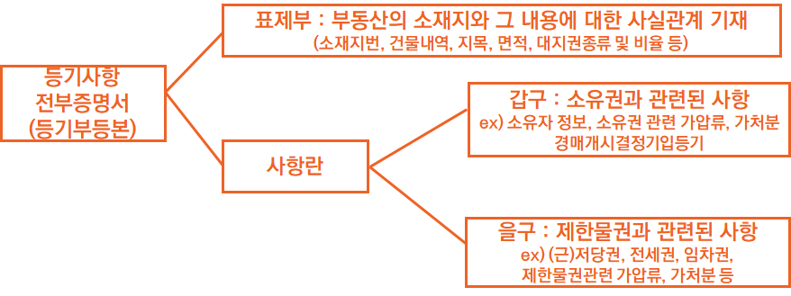 - 등기사항전부증명서(등기부등본) : 부동산의 권리관계를 공시 ex) 소유권, 제한물권 등