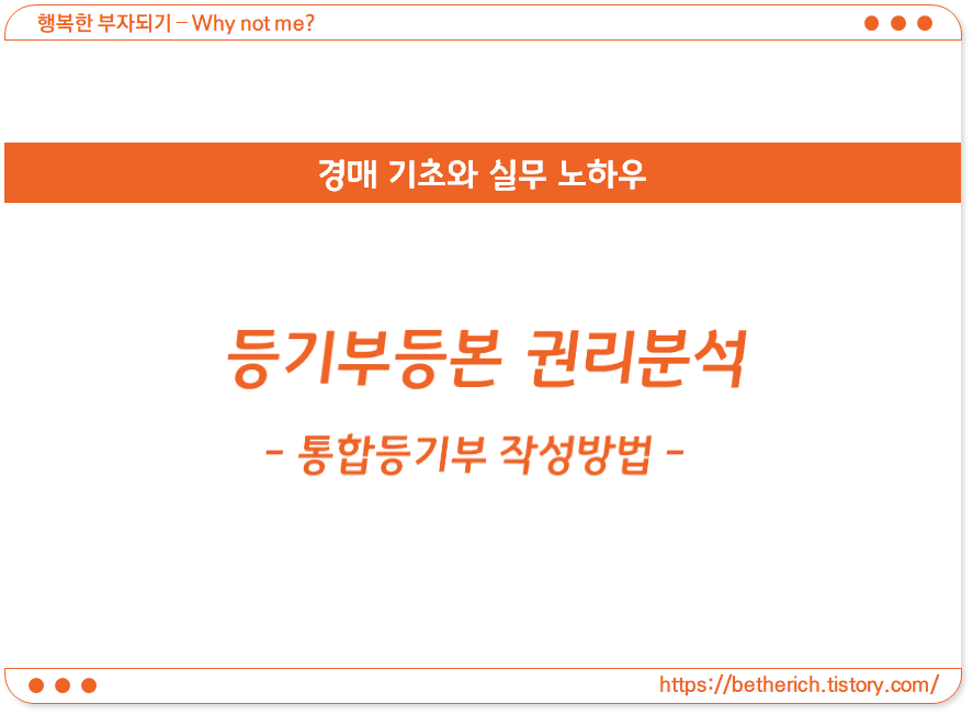 통합등기부란 갑구와 을구에 살아있는 권리관계들을 시간적인 순서로 재배열하는 것입니다. 보통 경매정보지를 통해 흔히 볼 수 있는 등기부 요약 내용들이 통합등기부라고 할 수 있습니다. 물론 경매정보지를 보면 아주 잘 요약이 되어 있기 때문에 굳이 이걸 짤 필요가 있을까 라는 생각이 듭니다. 하지만 경매정보지와는 별개로 우리가 우리 스스로 통합등기부라는 것을 짤 줄 알아야 합니다.