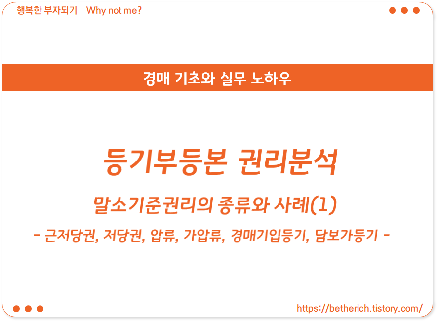 근저당권과 저당권, 가압류와 압류에 대해서는 각각 링크를 참조하시면 됩니다. 그리고 경매개시결정의기입등기(경매기입등기)와 담보가등기에 대해서만 간단하게 무엇인지만 살펴보겠습니다.
