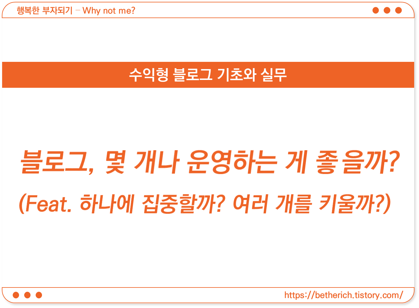 물론 블로그 하나를 키우는 데 필요한 시간과 노력만큼 다른 블로그에도 투자할 수 있다면 당연히 블로그 개수가 많은 게 좋을 것 같습니다. 하지만 투자할 수 있는 시간과 노력은 제한되어 있는데 그것이 분산된다면 오히려 역효과가 나올 수도 있을 것 같습니다.