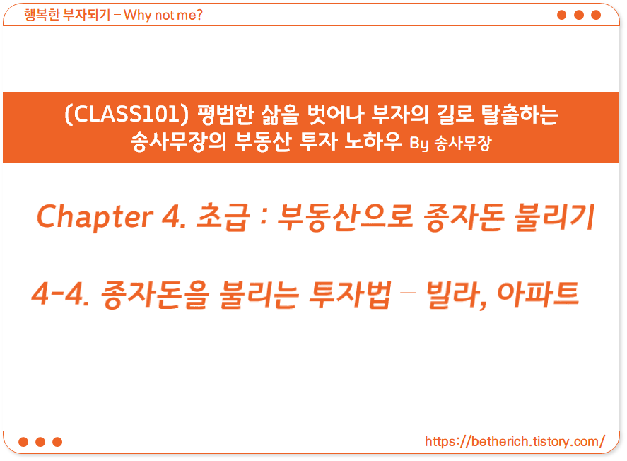 (클래스101) 송사무장의 부자되기 클래스 4-4. 종자돈을 불리는 투자법 : 빌라, 아파트