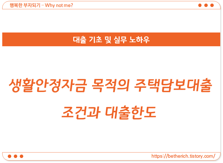 주택담보대출이 단순히 주택을 구입하기 위한 목적으로만 사용되는 것이 아닌 '생활안정자금 목적'으로도 사용될 수 있다는 것을 아래 링크를 통해 알게 되었습니다.