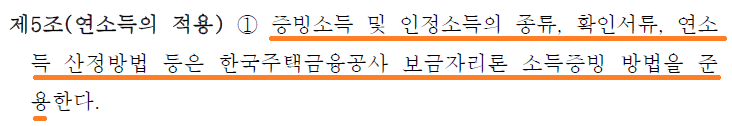 일단 증빙소득과 인정소득의 종류와 확인서류, 산정방법 등은 한국주택금융공사 보금자리론 소득증빙 방법을 준용한다고 되어 있습니다. 때문에 한국주택금융공사 보금자리론 소득증빙 방법을 한 번 살펴보겠습니다.