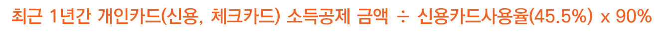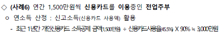 예를 들어 소득이 없는 전업주부가 본인 명의의 카드를 연간 1,500만원씩 사용할 경우 해당 공식에 따라 3,000만원 정도로 소득을 산정할 수 있다는 의미입니다.