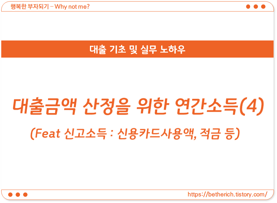 | 대출금액 산정을 위한 연간소득(1) (Feat 소득의 종류 : 증빙소득과 추정소득) (1) | 2021.07.19 |
