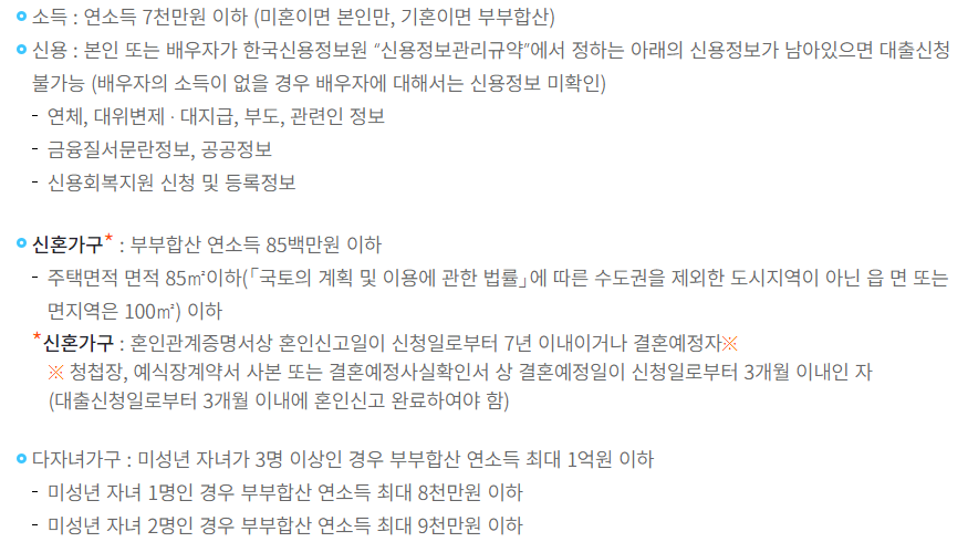 3. 부부합산 연소득 7,000만원 이하(단, 결혼 7년 이내 신혼부부일 경우 8,500만원, 다자녀가구일 경우 1억 원 이하)