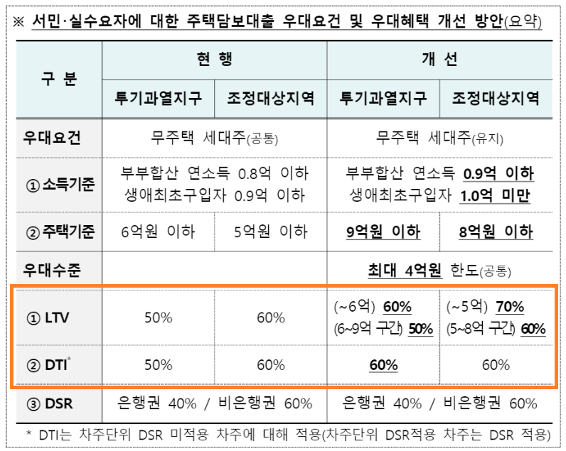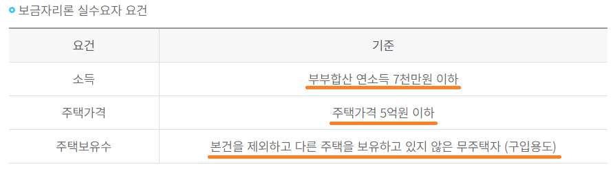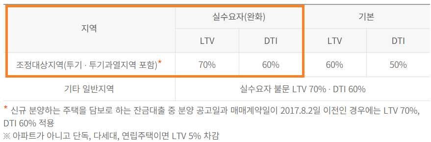 하지만 보금자리론은 규제지역이라 할지라도 '실수요자(완화)' 요건일 경우 LTV와 DTI가 완화된다는 장점이 있습니다.