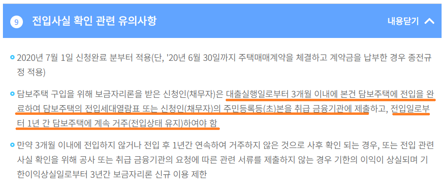 하지만 보금자리론은 목적과 취지 때문인지 '실거주요건'이 보다 강화되었습니다.