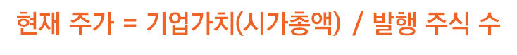 그렇다면 현재 주가는 기업 가치(시가총액)에서 발행 주식 수를 나눈 금액입니다.(어린 시절 배웠던 수학 공식을 떠올려 보면 어렵지 않습니다.)