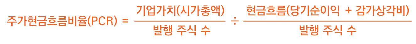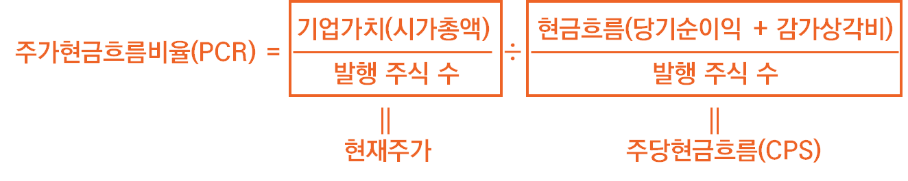 그렇다면 앞서 주가현금흐름비율(PCR)의 산출공식을 살짝 바꾸면 이렇게 될 겁니다.