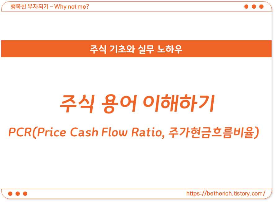 결국 주가현금흐름비율(PCR)이란 현재주가가 주당현금흐름(CPS)의 몇 배인지를 나타내는 지표이며, PER이나 PBR, PCR 등과 같이 수치가 낮을수록 저평가되어있다는 것을 의미합니다.