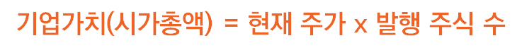 앞서 공부했던 대로 기업가치(시가총액)란 현재 주가에서 발행 주식 수를 곱한 것입니다.