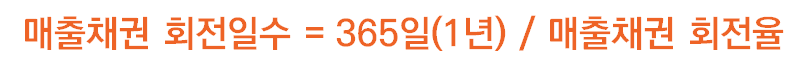 쉽게 말해서 '매출채권이 현금으로 회수되는 속도' 정도로 이해하면 될 것 같습니다. 그리고 해당 공식은 다음과 같이 구할 수 있습니다.