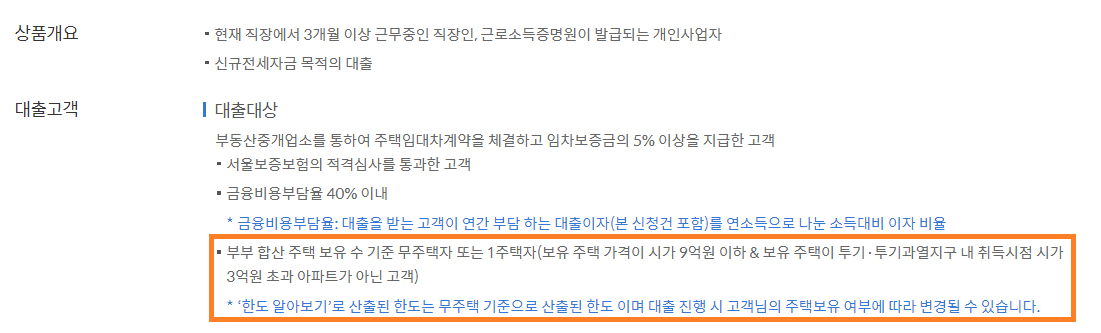 이런거 저런거 따지니 꽤나 복잡합니다. 하지만 전세보증금 5억 원을 초과할 경우 이용할 수 있고 최대 한도가 5억 원이기 때문에 많은 사람들이 이용하는 상품이므로 알아두면 좋을 것 같습니다.