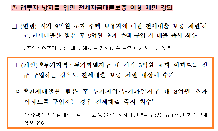 무주택자 뿐만 아니라 1주택자의 경우도 부부 합산 연소득과 상관 없이 보유한 주택이 9억원 이하인 경우라면 대출을 받을 수 있다고 합니다. 하지만 2주택자는 대출보증 취급이 불가하다고 합니다. 그리고 정부 정책에 따라 2020년 7월 10일 이후부터 전세대출을 받은 상황에서 투기지역, 투기과열지구 내 3억 원 초과 아파트를 구입하게 될 경우 기존에 받은 전세대출은 회수된다고 합니다.(단, 실수요자가 확인되는 경우네는 제외)
