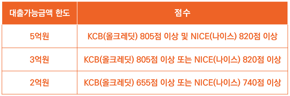 그리고 SGI서울보증도 신용등급에 따라서 한도가 정해지게 되는데 신용등급이 좋아야 최대한도 5억원까지 대출이 가능하다고 합니다. 신용등급에 따른 대출 한도는 아래와 같습니다. 때문에 대출을 받고자 하는 차주의 '신용등급'이 상당히 중요합니다.
