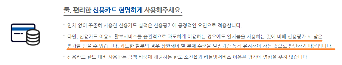 3. 카드대출, 현금서비스는 신용점수 관리를 위해 가급적 사용하지 마라.