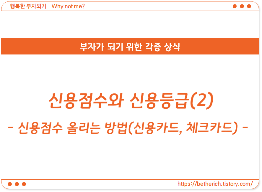 아무래도 신용카드, 체크카드를 많이 사용하는 만큼 이와 관련하여 신용점수를 관리할 수 있는 방안 또한 많이 있는 것 같습니다. 여러 가지 방안이 있었지만 결국은 '신용카드, 체크카드를 적절하게 사용하되 무리하지 않게 쓰고 적당히 잘 상환하는 것'이 신용점수를 높이는 데 있어서 가장 중요한 것 같습니다.