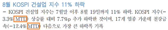 또한 2021년 7월 21일 시점에서 주가상승률이 MTD 20.3%라고 되어 있을 경우 '2021년 7월 1일 시점의 주가보다 주가가 20.3% 올랐다' 정도로 생각하면 되겠습니다.